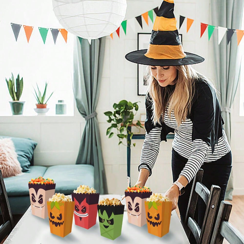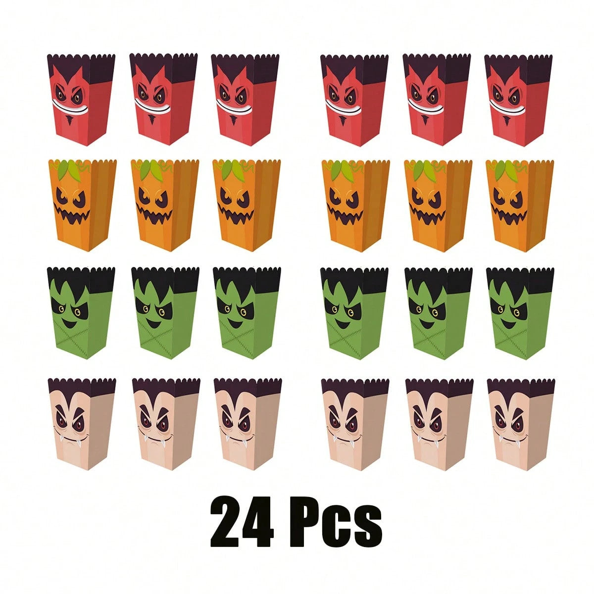 24 Halloween Popcorn Boxes With Ghost, Skeleton, And Monster Designs - Disposable Paper Containers For Halloween Party Supplies, Movie Night Snack Holders, And Halloween Party Gifts