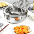 Stainless Steel Deep Fryer Pot,1 Count Frying Chicken Pot with Temperature Control & Lid,Kitchen Accessories,Japanese Style Tempura Fryer Pan for Home Kitchen,Kitchen Gadgets